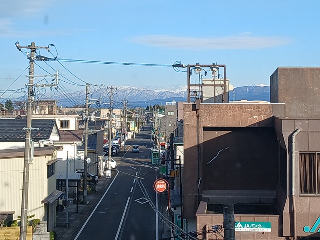 Something on the top of the building of Japan Agricultural Association was hiding snow-covered Iide Mountains.