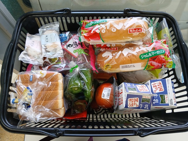 They are what I bought in the afternoon. The sea-bream was hidden under the bread. Two sweet cakes at the top left in the photo are to be offered to the alter of my father who passed away five years ago (I’ve already put them there).