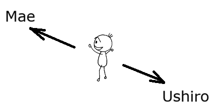 example : Satou-san no Mae ni Suzuki-san ga Imasu. (Sato-san is in front of Suzuki-san.)