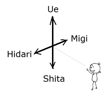 You could see that what is [Place] in 1 and 2 turned to be {[Noun] no [Position]} in 3 and 4. In order to learn the expressions 3 and 4, it is necessary to know some nouns that are used for describing positions. Take a look at illustrations. They are not prepositions but nouns that describe positions.