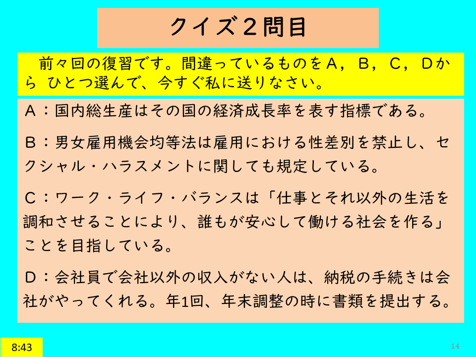以下に、第3週2回目の授業中に出題したクイズを示す。