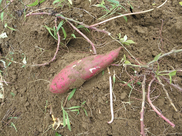 Sweet potato’s leaves had widely spread. I planted the seedlings of sweet potato on two furrows last June. Recently they looked even chaotic. Now the month of October is reaching the end. So I decided digging them.