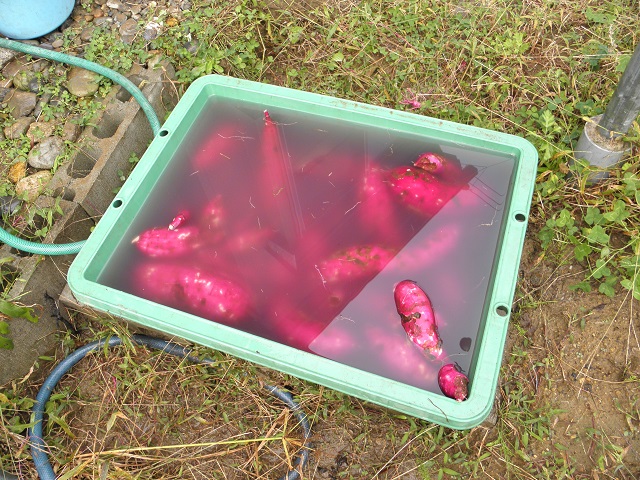 Actually it was so exhausting that I could not dig even one furrow. I could dig only a half of it. And then I washed the sweet potato using water.