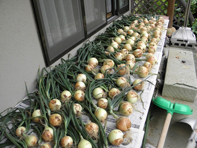 今週末は日曜日の授業がないので、少し休みたかったです。しかし、いい天気でしたから、畑のタマネギを収穫しました。去年の秋、DIYショップでタマネギの苗がとても安く売られていましたから、100本衝動買いしてしまいました。今日収穫して数を数えたら102個ありました。枯れた苗もありましたから、本数が少し多かったようです。今、日本ではタマネギの値段が高くなっています。102個あっても私と老母では食べきれませんから、東京の近くに住んでいる姉に半分ぐらい宅配便で送ろうと思っています。
