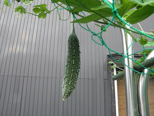 Hello to my Students on Jul.17, 2022: A Bitter Melon “Goya” Hanging in my Garden