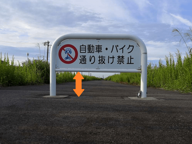 No, “Do Not Pass Thru” on that white board means that an automobile and a motorcycle are not allowed to go through that riverbank road.