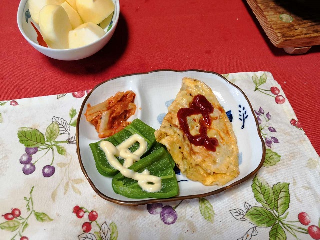 Every morning I eat this kind of dish with Miso soup, one slice of toast, and a cup of hot milk.
