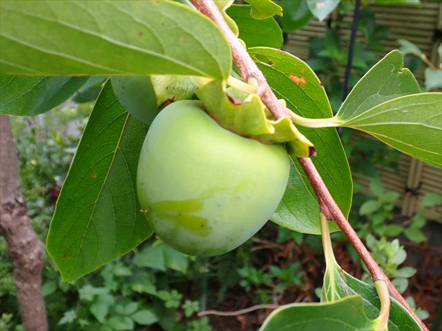 By the way, I found there were many persimmon fruits on the tree in my garden. In every year so far, all the persimmons have fallen down before ripening. But this time I can see them a lot. So, I wish that some, or a few of persimmons could survive until it becoming orange color in November.