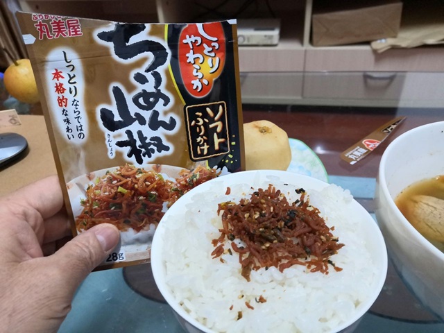 January: I was living in the residence for foreign teachers. This photo shows what I put on steamed rice. It’s “Furikake” in Japanese.