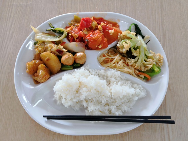 June: When I was in the campus, I cooked all the meals myself except lunches in weekend. This is a typical dish which I ate for weekend lunch.