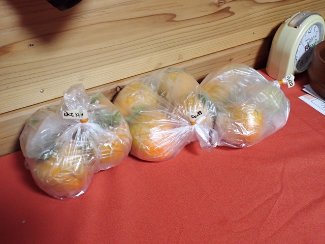 Dates on the tape show when I put the persimmons into plastic bags; Oct.14, 17, and 20. I think I will be able to eat one a day from Wednesday.