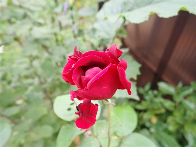 A Flower of Rose “Papa Meilland” was eaten by insects. So, its shape is bad.